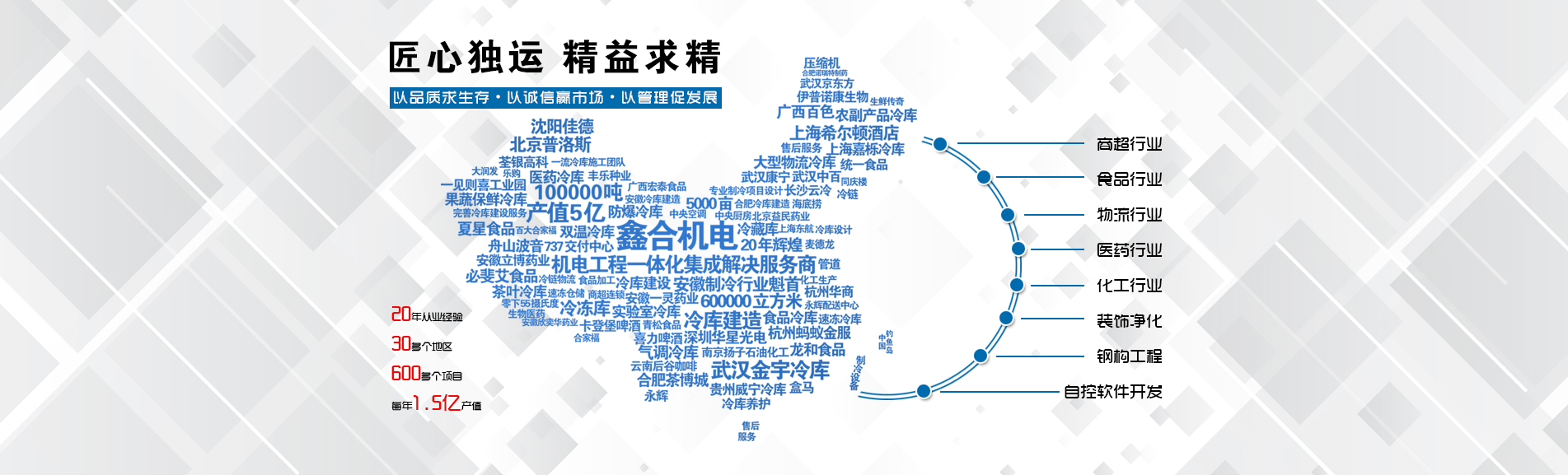 安徽鑫合機(jī)電設(shè)備有限公司于2002年組建運(yùn)營,專業(yè)從事冷凍、冷藏庫、中央空調(diào)、醫(yī)藥凈化工程的規(guī)劃設(shè)計(jì)、施工承建、售后服務(wù)為一體的綜合性工程公司,與100多家實(shí)力雄厚的大中型企業(yè)建立長期產(chǎn)略合作關(guān)系,其中有多家世界500強(qiáng)和上市企業(yè)。公司作為中國倉儲(chǔ)與配送協(xié)會(huì)會(huì)員單位、安徽省制冷學(xué)會(huì)理事單位、上海楊浦區(qū)制冷協(xié)會(huì)工程總承包負(fù)責(zé)單位,引領(lǐng)于行業(yè)前沿。我們將銘記給予我們大力支持的各界新老朋友及合作伙伴,我們將會(huì)保持“互惠互利、共同發(fā)展”的原則與您共創(chuàng)雙嬴的合作關(guān)系。